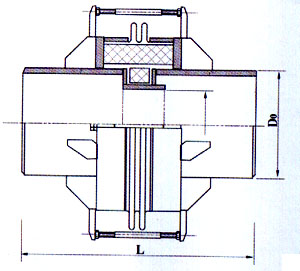 該膨脹節(jié)由兩段波紋管,中間接管及帶有限位螺母的小拉桿等零件組成,它在吸收橫向位移的同時,還吸收軸向位移。