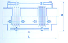 該膨脹節(jié)由兩個單式鉸鏈型膨脹節(jié),用長的中間接管組合而成,它能吸收單平面內(nèi)的橫向位移,它們的鉸鏈板與銷軸具有承受內(nèi)壓推力能力。